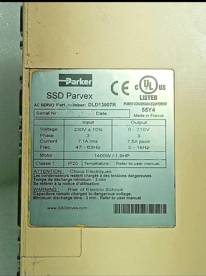 Parker AC Servo Drive DLD13007R SSD PARVEX 7.1a 230v 1400W / 1.9HP – USED